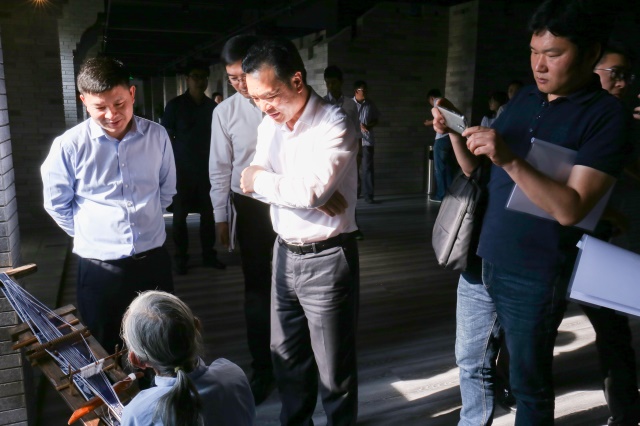 沈锡权副总编辑来到临海市农合联产业合作园,详细了解农合联产业合作园的运营模式,参观了农产品展示展销区、非遗馆和乡村旅游展区,对我们的C2B2F创新运营模式表示肯定。调研行程中,非遗馆老民间艺术传人的民间艺术展示吸引了众人的目光,赞叹连连。
