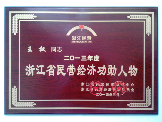 年度“浙江省民营经济功勋人物”荣誉称号!