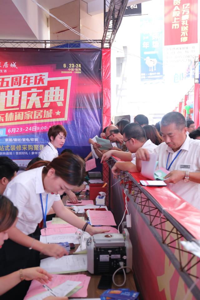 在这五周年到来之际,我们本着五年一大庆的想法,邀请了家具建材行业最著名的第三方策划公司——三人禾来主持策划本次五周年的活动。市场里38个一线大品牌积极报名参加,从6月5日至6月22日在这18个日夜里,三人禾的老师们将团队打造成一个感恩、拼搏、勇往直前、从不言败的战斗小分队,队员们主动出击寻找潜在的装修户,力邀客户前来家居城购物抽大奖。商户老板们与营业员们在每天的晨夕会中分享着自己卖卡的心得体会,自己一路走来到现在的人生历程,小小的培训教室里充满了家的温馨与关怀。