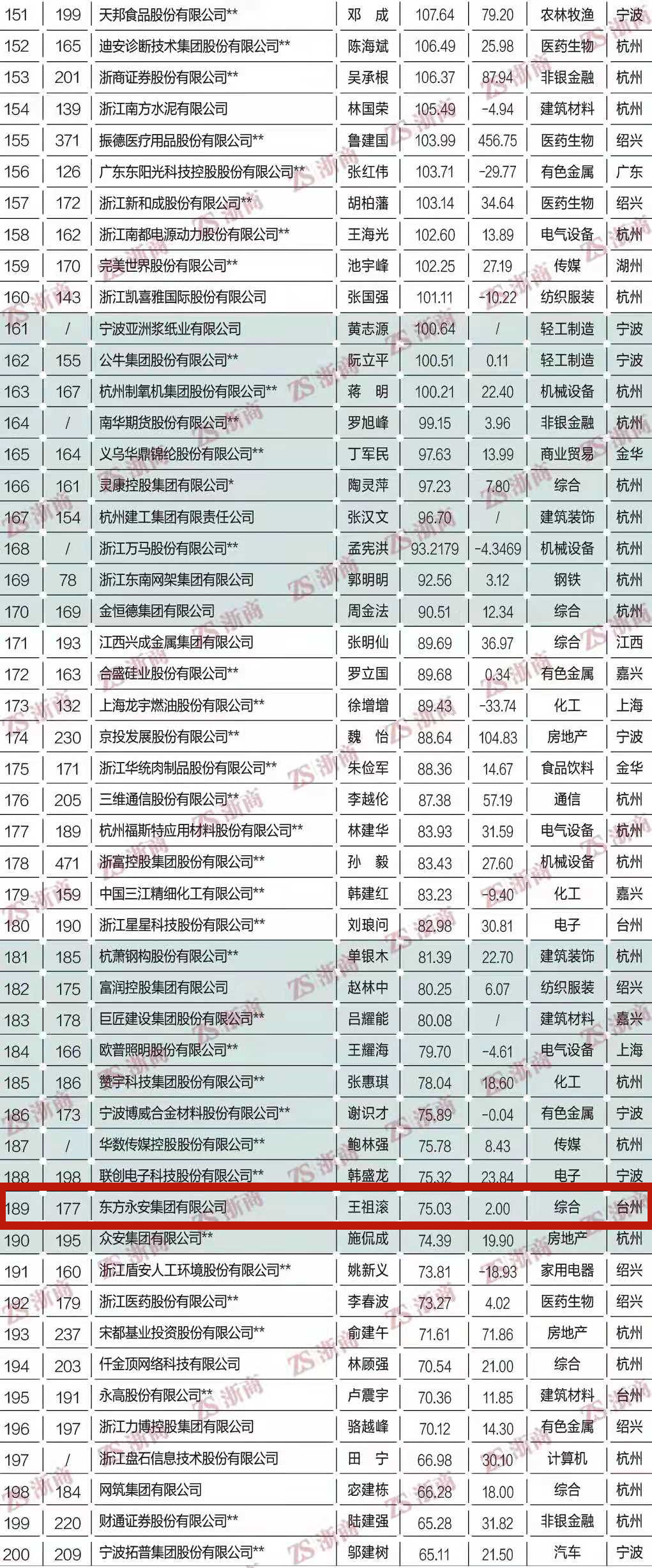 2021浙商全国500强 部分榜单