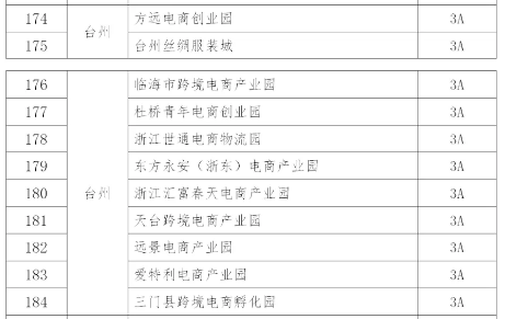 在公布的名录中,台州共11家3A级,其中临海有4家,分别是:临海市跨境电商产业园、杜桥青年电商创业园、浙江世通电商物流园、mansion88明升(浙东)电商产业园。